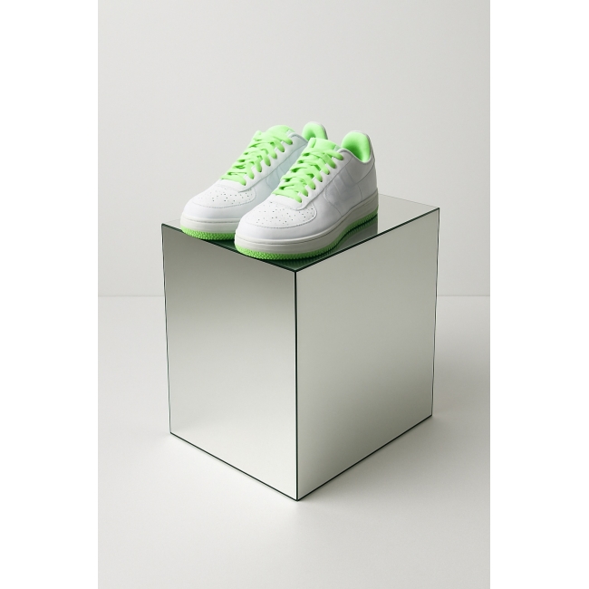 A mirrored plinth does more than simply support an object. Its reflective surfaces bounce back light, colour and shape, making your item visible from multiple angles. This naturally draws attention and increases visual impact. In a window display, at a trade show, or as a retail display, the plinth also creates a sense of extra space. It blends subtly into its surroundings, while allowing the object itself to stand out even more. That makes this plinth ideal for shoes, accessories or exclusive products that deserve to be noticed.